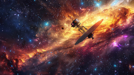 Render of a satellite journeying through space near the sun, showcasing technological exploration.. AI Generation