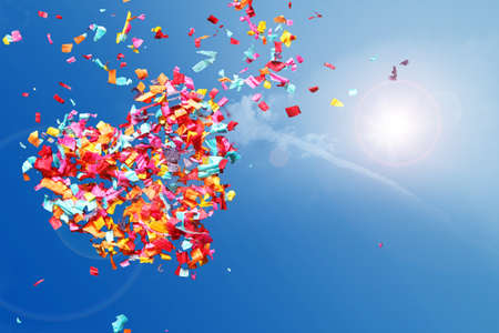 colorful confetti falling from the sky on a sunny day, created with generative ai