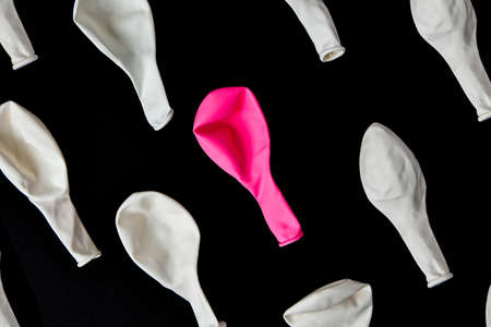 white balloons on black background and one blue balloon. LGBT pride symbol concept. Gay and lesbian bisexual. International day against homophobia