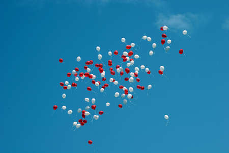 Red and white balloons against the background of the evening beautiful
