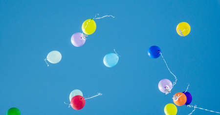 Colorful balloons flying in the sky. Colorful balloons background.