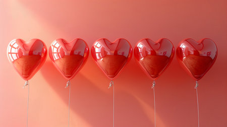 Red heart shaped balloons on a red background. Valentines day.
