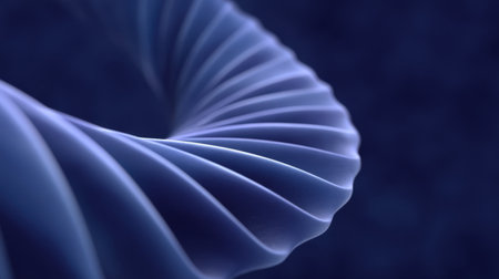 This abstract image showcases a graceful spiral shape with flowing curves and soft gradients, set against a rich dark background, ideal for artistic projects.