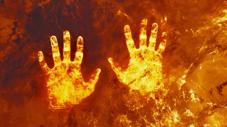 Glowing handprints on a textured surface