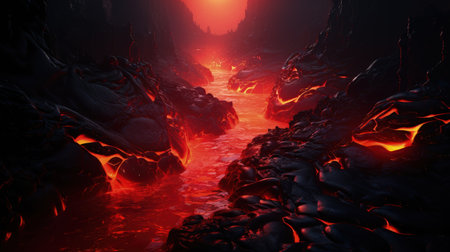 Fiery Volcanic Landscape 3D Render