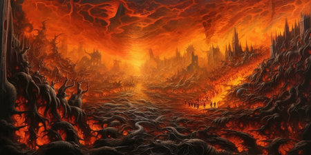 A painting of hell of suffering with submerged screaming men, drowning fire in hell AI generated image, ai