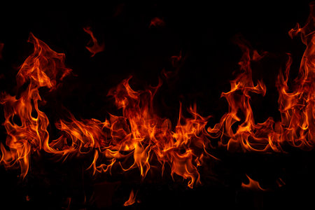 Fire flames on black background. Blaze fire flame texture. Fire flame with copy space. Blaze fire flame textured background. Flames on black background.