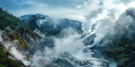 Experience a stunning natural landscape featuring steaming hot springs nestled among majestic mountains. A perfect escape into tranquility and beauty.