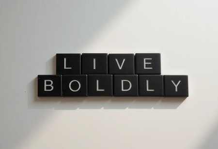 A creative and inspiring flat lay of black tiles displaying the motivational phrase Live Boldly. Perfect for decor, social media posts, or personal encouragement.