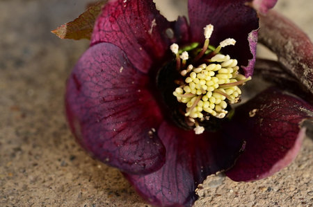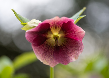 Lenten rose (Helleborus orientalis) purple flower. Late winter flower of perennial plant in buttercup family (Ranunculaceae), native to Greece and Turkey