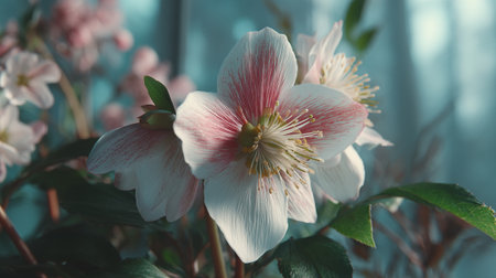 Hellebore Flower Blossom with Delicate Pink and White Petals Detail