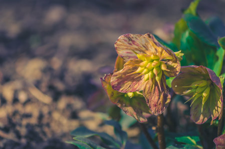 Helleborus flower in spring Helleborus sunlit flower in the woods