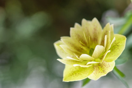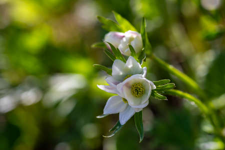 One white green flowering hellebore. Genus Helleborus of the buttercup or crowfoot family - Ranunculaceae. High quality photo