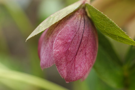 Lenten rose (Helleborus orientalis) purple flower. Late winter flower of perennial plant in buttercup family (Ranunculaceae), native to Greece and Turkey