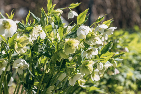 Beautiful Christmas rose flowers bloom in winter and spring. Garden of an ordinary family in Fukuoka, Japan.