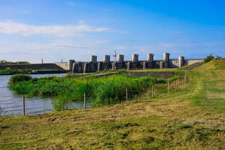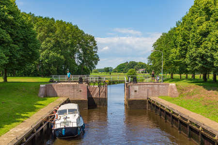 Rechteren, Netherlands - June 20, 2020: Water lock Vilsteren in river Vecht near Dalfsen, Overijssel in the Netherlands