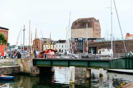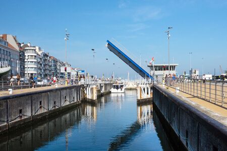 Ostend, Belgium, August 2019. Canal and drawbridge in the Belgian city of Ostende.