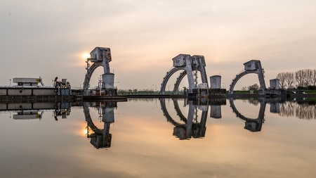 sluice system near berlin with beautiful evening sky
