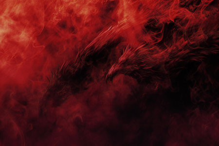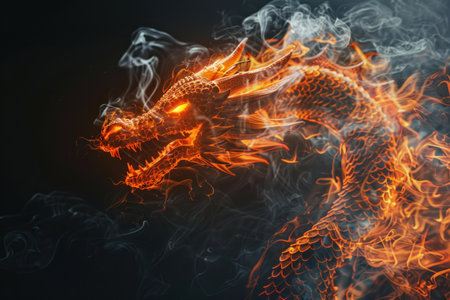 Stunning smoke art forming a fiery dragon with glowing eyes against a dark backdrop