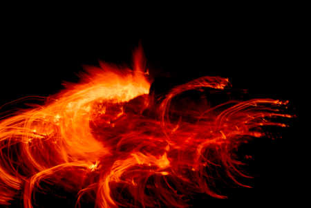 Image of dancing fire by night on black background