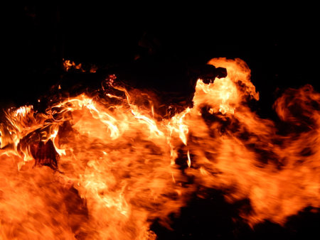 The flames of fiercely burning fire.