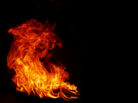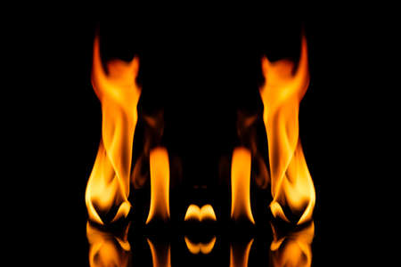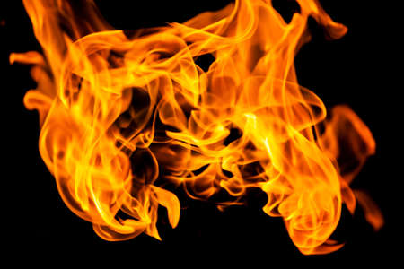 Flame of fire isolated on a black background. Abstract background.