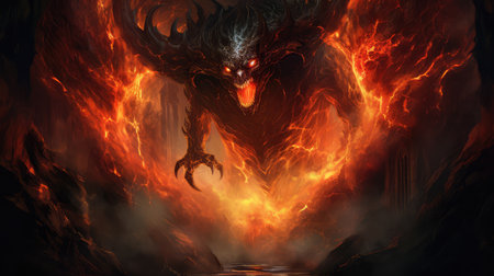 Blazing Fire monster. Evil horror flame. Generate Ai