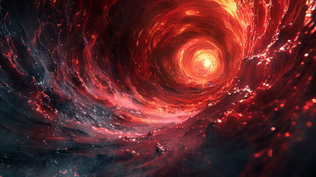 Swirling vortex of crimson and black in the ocean