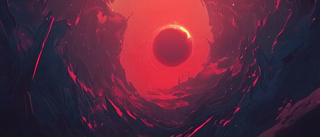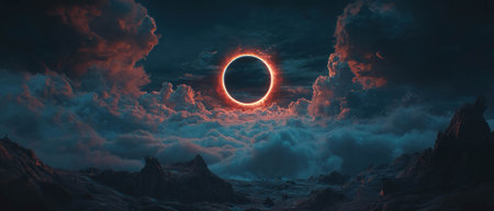 Celestial eclipse sky with vivid colors and soft lighting at a cinematic angle