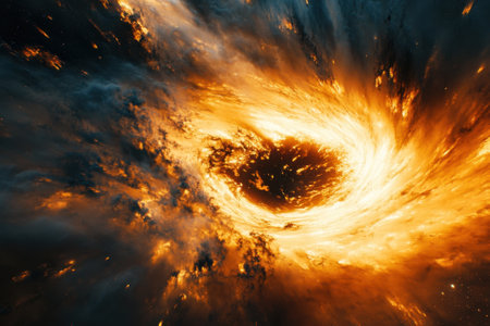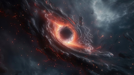 A striking cosmic vortex formed by swirling flames and deep space, creating a mesmerizing visual effect.
