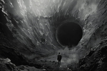 Man standing in the middle of a dark hole