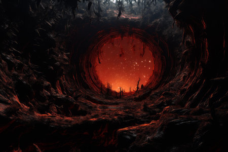 AI Generated. Deep dark mysterious hole in the ground surrounded by earth and natures elements