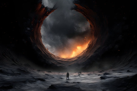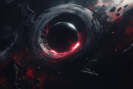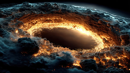 Dramatic visual representations of black holes or eclipses with glowing energy rings. Generative AI