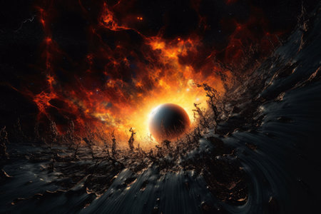 An AI generated illustration of A sci-fi scene featuring a vivid, dynamic image of a planet exploding