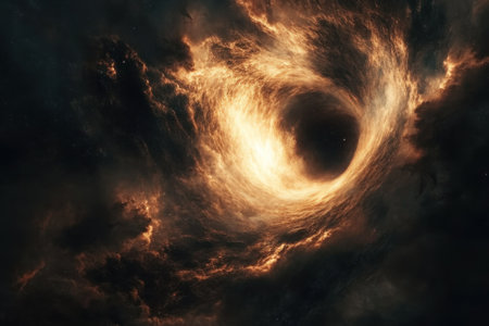 black hole surrounded by nebula, with mysterious and beautiful lights shining, created with generative ai