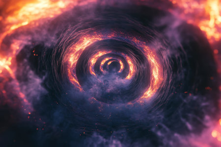 A close up of a black and orange fire vortex, AI