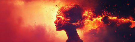 Fiery woman. Burning beauty. Face in flames. AI generative.