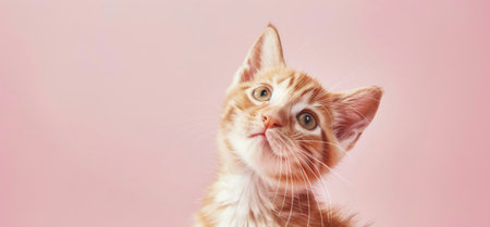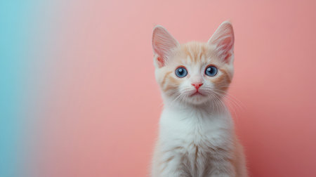 Adorable kitten in pastel setting with curious expression.