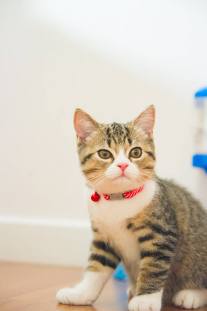 Portrait of a little cat inside a house