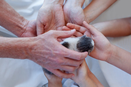 A heartwarming scene featuring a group of adorable kittens, showcasing their big, expressive eyes and fluffy fur, creating a cozy and playful atmosphere.