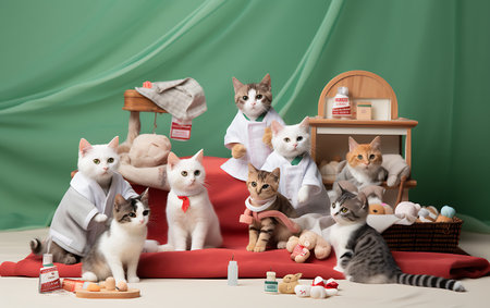 A captivating image of a group of adorable kittens, ideal for promoting veterinary care and pet health services.