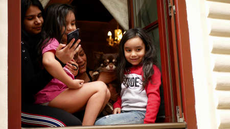 Carnival Masopust celebration masks parade children window In Brno festival Colors of the Bronx of gypsies, traditional Slavic ethnic celebration procession, february winter associated with folk costumes mask gypsy roma, people are happy, sing and scream,