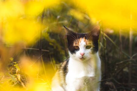 Portrait of a cat in the garden. Selective focus.