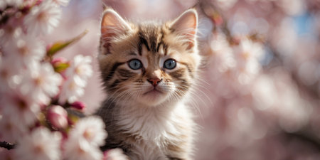 AI Generated. A kitten inside the cherry blossoms seen from above