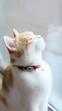 Cute cats are looking daytime in the house using wallpaper or background. for animal