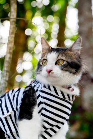 Portrait of a beautiful cat in the park. Selective focus.