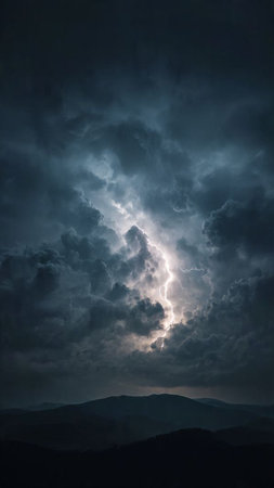 Striking lightning storm background with dark clouds and flashes of light, adding drama to designs