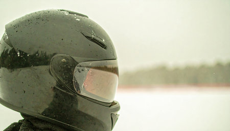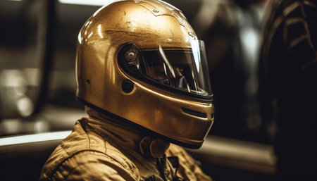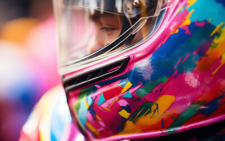 Close-Up of Racing Pro in Protective Helmet