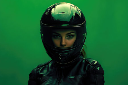 Vibrant Green Background Highlights Female Racer