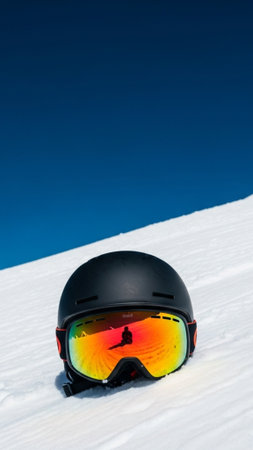 A high-quality, vertical (9:16) editorial photograph featuring a matte black ski helmet and highly r